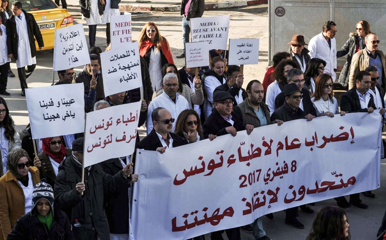 التلويح بتنفيذ إضراب عام لن يقتصر فقط على قطاعي التعليم الثانوي والأساسي، بل كذلك سيشمل قطاعا آخر حيويا وهو قطاع الأطباء، حيث من المنتظر ووفق ما أقرته الهيئة الإدارية للنقابة العامة لأطباء الصحة العمومية التابعة للاتحاد العام التونسي للشغل منذ أيام تنفيذ إضراب عام يوم 23 فيفري الجاري للمطالبة بالتسريع في سن قانون المسؤولية الطبية الذي يضمن حقوق الطبيب والمريض معا إضافة إلى تحسين الوضع الصحي في تونس ووضع حد للاعتداءات التي يتعرض لها العاملون بهذا المجال يوميا مع التعبير عن الوقوف الفاعل إلى جانب زميلهم الطبيب المبنج الموقوف في قابس.