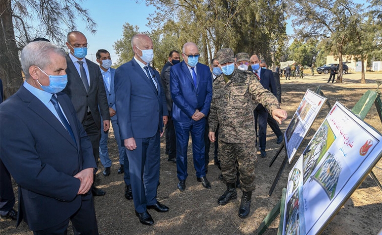 وعبر رئيس الدولة عن فائق تقديره للمجهودات التي ما انفكت تبذلها المؤسسة العسكرية ووزارة الصحة ووزارة أملاك الدولة والشؤون العقارية، مشيرا إلى أن لجنة القيادة ستتولى متابعة مختلف المراحل المقبلة بالتنسيق مع القطب التكنولوجي الذي سيقع إحداثه، ليشدد على أنه سيواصل تحمل الأمانة والبقاء على العهد والعمل بنفس العزم والقوة والإرادة، انطلاقا من نفس الثوابت التي تقوم على الصدق. وبين أنه لا يتحرك وفق حسابات البعض أو ترتيباتهم بل وفق المبادئ التي عاهد عليها الشعب التونسي، مضيفا : إننا لن نقبل أي مقايضة في حق الشعب التونسي أو تتعلق بسيادة تونس. كما جدد تأكيده على أن لتونس من الإمكانيات الكثير، يكفي أن تتوفر الإرادة الصادقة لتحقيق حلم الشعب التونسي في الشغل والحرية والكرامة الوطنية.