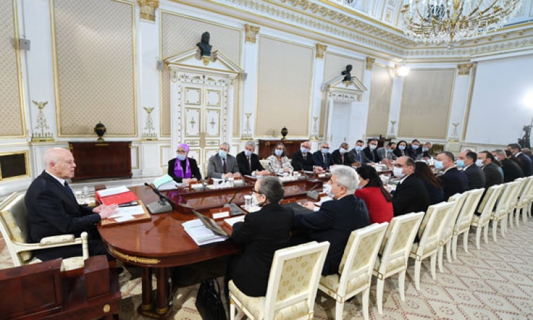 أكد رئيس الجمهورية في فيديو نشرته الرئاسة على جملة من مشاريع الأوامر والمراسيم المهمة التي سيتم التداول فيها في مجلس الوزراء ذات العلاقة بعدد من القطاعات في كل وزارة، مشيرا إلى أنه توجد بعض المسائل الفنية التي لا تحتاج إلى كثير من النقاش وقد تمّ الاتفاق حول محتواها وتمّ تحديد القواعد المنظمة لها مع وجود مسائل مستعجلة، مسائل حياتية تتعلق بحياة المواطنين وحقوقهم وحرياتهم وكرامتهم، قائلا «لن يهدأ لي بال إلا إذا تمّ تطهير البلاد وما الإجراءات التي تمّ اتخاذها إلا لتطهير البلاد من هذه الأدران التي علقت بها منذ عشرات العقود ولا يمر يوم واحد إلاّ ازداد الوضع تفاقما ولا بدّ من وضع حدّ لانحلال الدولة ومؤسساتها ولا مجال لأن يتسلل هؤلاء إلى كل القطاعات تحت أي عنوان كان، أعلم جيدا أنهم يتقلبون حسرة لأنه تمّ الشروع في وضع حدّ لعبثهم بمؤسسات الدولة وسنواصل تطهير البلاد كما سنواصل عملنا وجهدنا لوضع حد لهذه الأوضاع».