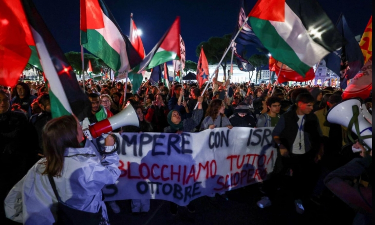 حدثٌ كاشف لمفارقة عالم يعيش تناقضاً صارخاً بين إرادة الشعوب وخيارات الأنظمة. ففي اللحظة التي منع فيها الاحتلال أسطولاً مدنياً إنسانياً من الوصول إلى غزة، كانت شوارع أوروبا، وخاصة في إيطاليا، تموج باحتجاجات متصاعدة لم تقتصر على إدانة الاحتلال، بل إدانة الحكومة الإيطالية نفسها لصمتها ودعمها للإبادة. لتعلن الشوارع الأوروبية قبل غيرها أن القضية الفلسطينية استعادت موقعها كقضية أخلاقية كونية.