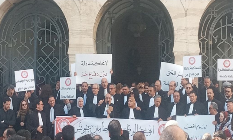 من جهتها قالت نقابة الصحفيين التونسيين في بيان لها الجمعة الفارط انّ " اصرار السلطة القضائية متواصل في التضييق على العمل الصحفي داخل المحاكم، فبعد تتالي حالات منع تغطية الجلسات، تم صباح الجمعة 13 فيفري 2026 منع الصحفيين والمصورين الصحفيين من تغطية الوقفة الاحتجاجية التي نظمتها الهيئة الوطنية للمحامين التونسيين بالمحكمة الابتدائية بتونس 1".